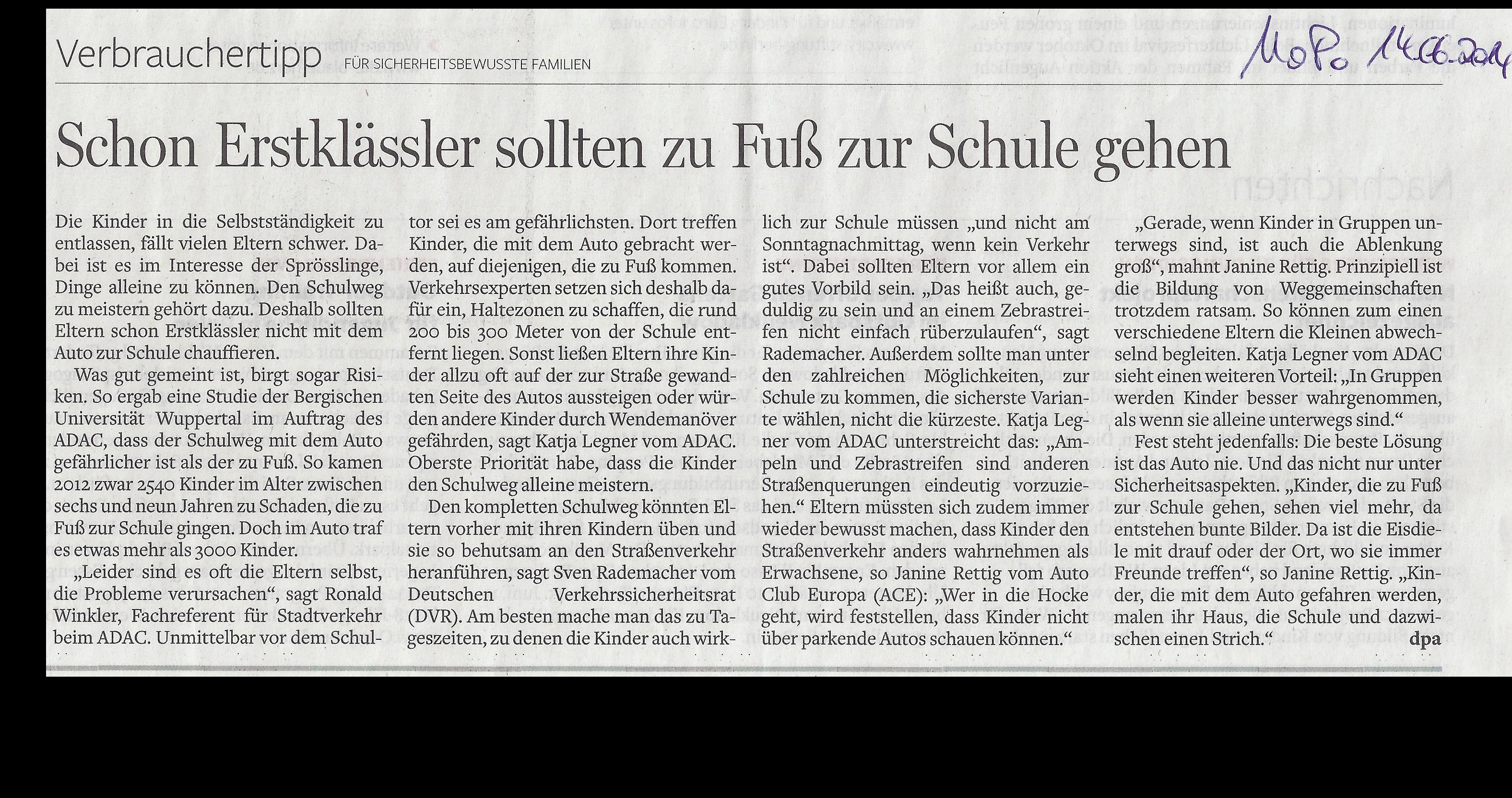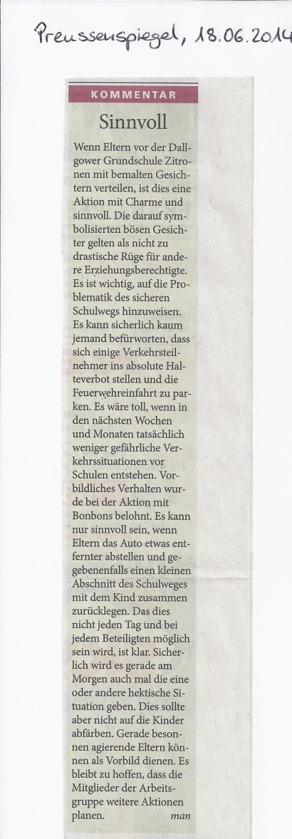Der Aktionstag "Zu Fuß zur Schule", den die "AG Sicherer Schulweg" in Dallgow-Döberitz am Montag aufgegriffen hat, war laut Angaben von Sprecherin Silke Wagenlechner, ein voller Erfolg. Die Rückmeldungen seien überwiegend positiv gewesen, meinte sie.
