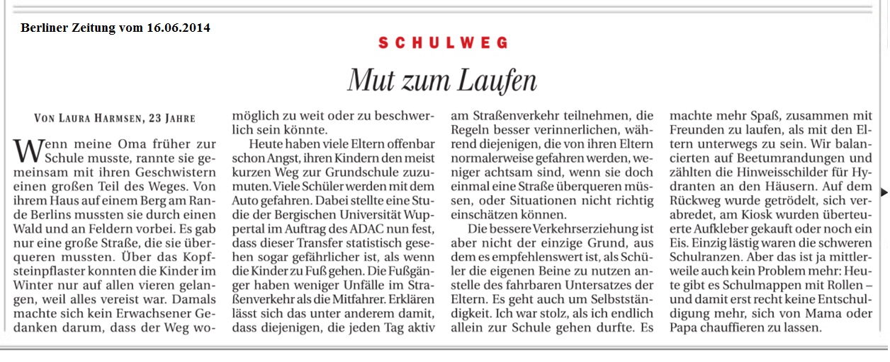 Berlin. Der Feind ist die Uhr: Kurz vor Schulbeginn bricht das Chaos in der eigentlich ruhigen Seitenstraße aus. Familienkutschen brettern über den Zebrastreifen, kommen schließlich auf einem Gehweg zum Stehen. Von den Rückbänken purzeln müde Kinder mit Schulranzen und trotten Richtung Schultor. Mami oder Papi drücken da schon wieder aufs Gaspedal, sofern ihnen die Autos anderer Eltern Platz dafür lassen. Solche Szenen sind ein Grund, warum sich Polizei, Lehrer und Verkehrsexperten an vielen Orten für ein Umdenken aussprechen.